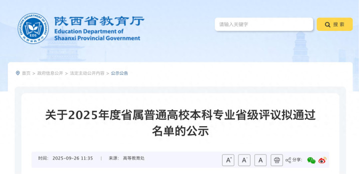 日前,陕西省教育厅发布《关于2025年度省属普通高校本科专业省级评议拟通过名单的公示》:经专家评审,拟同意申请增设全日制普通本科专业点117个、第二学士学位专业点7个,申请调整修业年限专业点5个,申请撤销普通本科专业点71个。